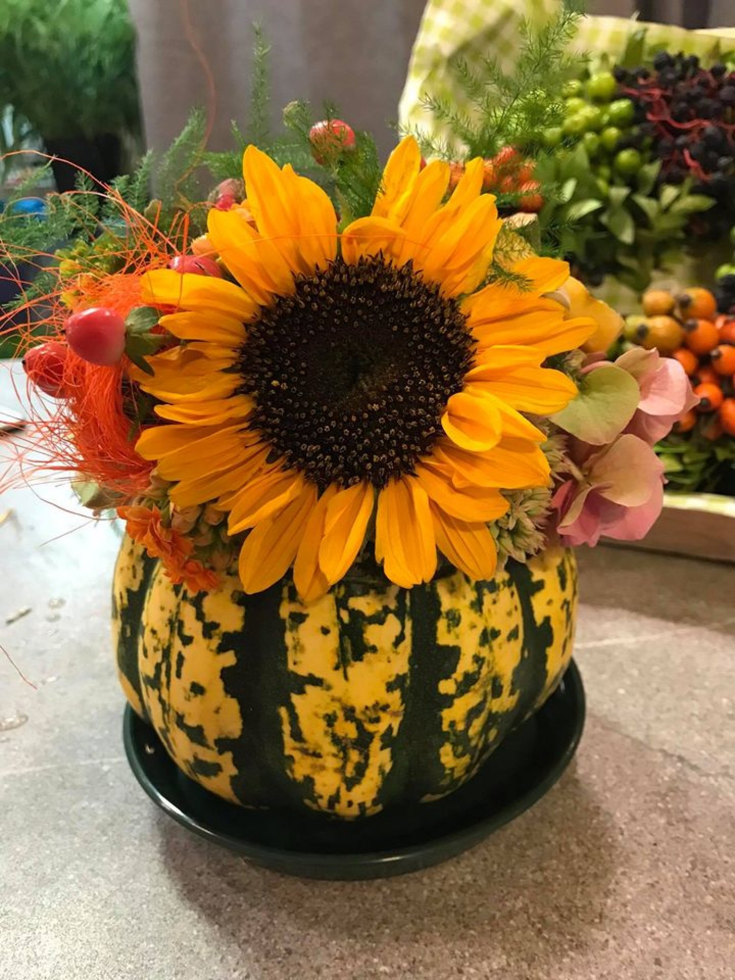 Wir gestalteten Blumenarrangements für Ihre Bühne in der Halle oder im Zelt.